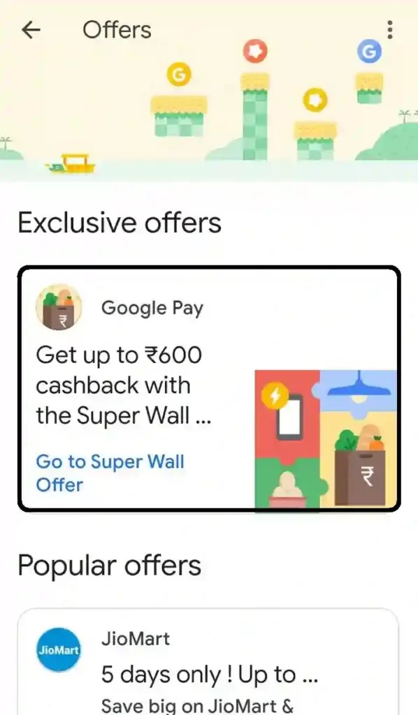 3) Go to the โoffersโ section and tap on the Google Pay Super Wall offer banner.